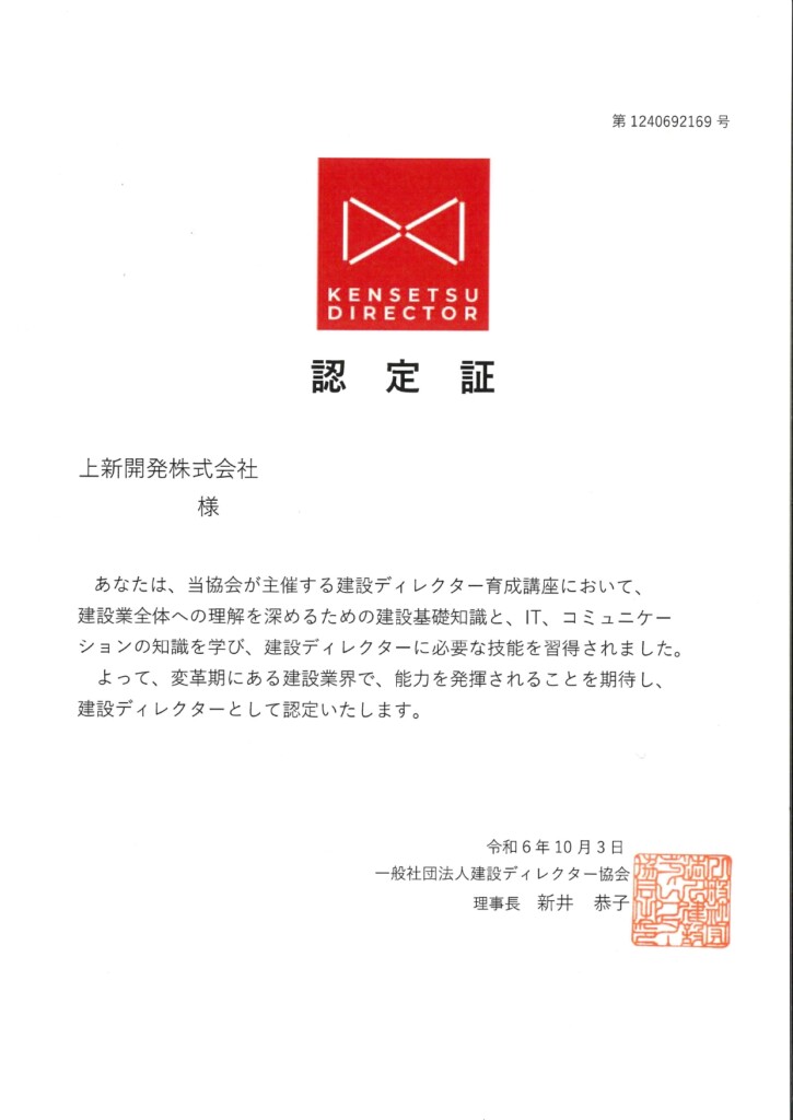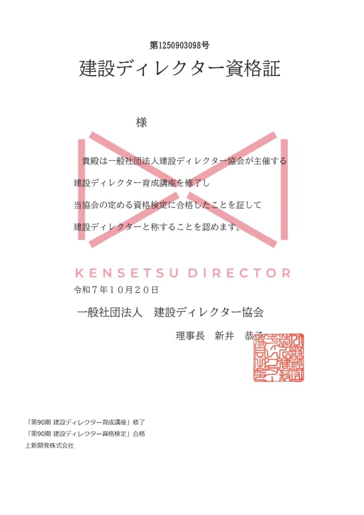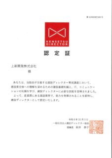 ✨建設ディレクター認定証✨